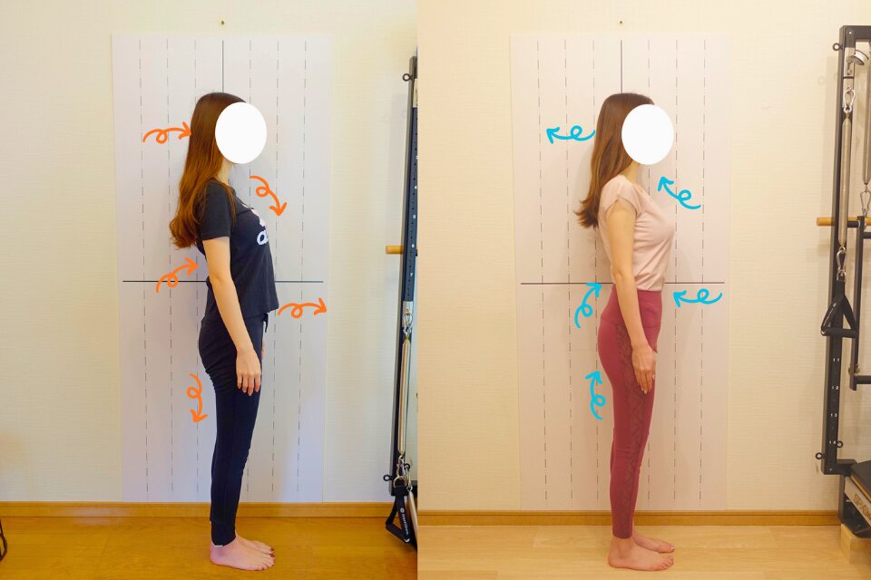 インストラクターは細やかな関節の分析も可能になります。関節ごとの「ずれ」を整えるレッスンによって美しいと見られる美的ラインが整っていくよ。