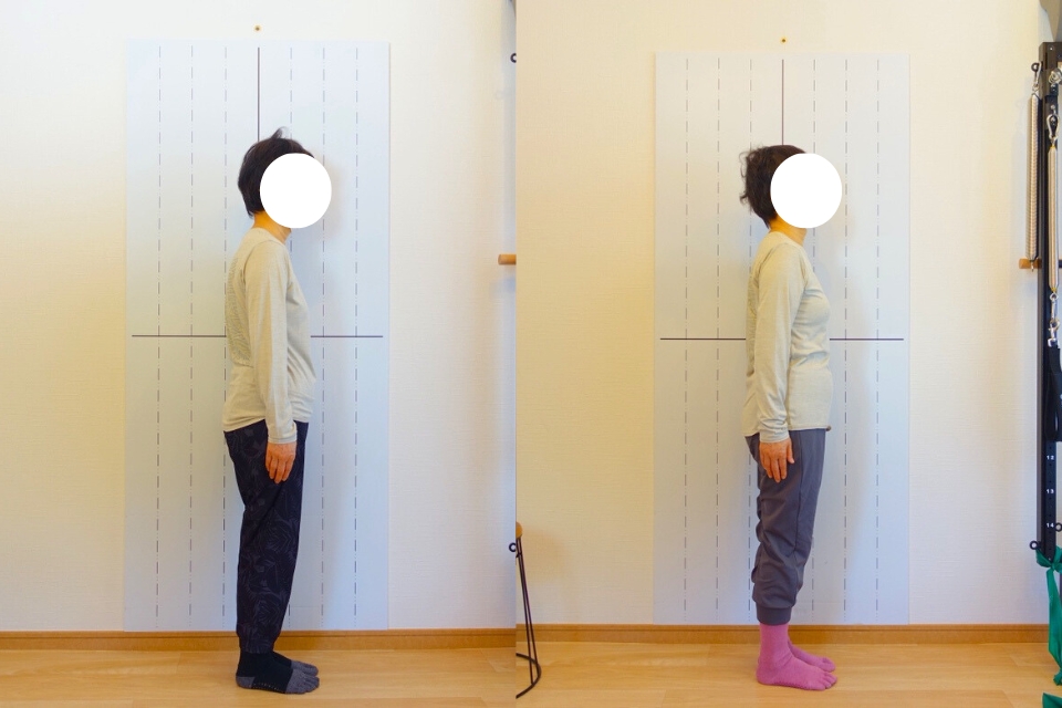 くるぶしから頭頂までが一直線のプラムライン上に並ぶようになり、 レッスン中の動きにも変化が出てきました。